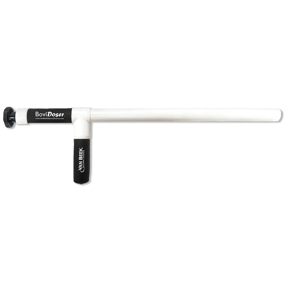 Ideal for administering Van Beek cow products such as Pect-A-Guard Plus, CalCaps and RumaStart capsules. Made of solid PVC to withstand frequent use. Plastic plunger and coated handle allow for a secure grip, even when wet. Smooth, rounded end helps reduce injury. Measures 25-1/2″L.