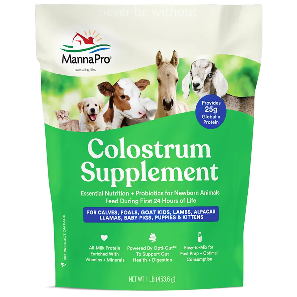 For calves, foals, goat kids, lambs, alpaca and llama crias, elk calves, fawns and baby pigs during the first 24 hours of life. With Opti-Gutâ„¢, Manna Pro’s natural recipe, complete with probiotics, for supporting a healthy gut, digestion, growth and development. Opti-Gutâ„¢ contributes to the overall well-being of the animal, giving them the upper hand in achieving a healthy gut from the start. Easy-to-mix for fast prep and optimal consumption.