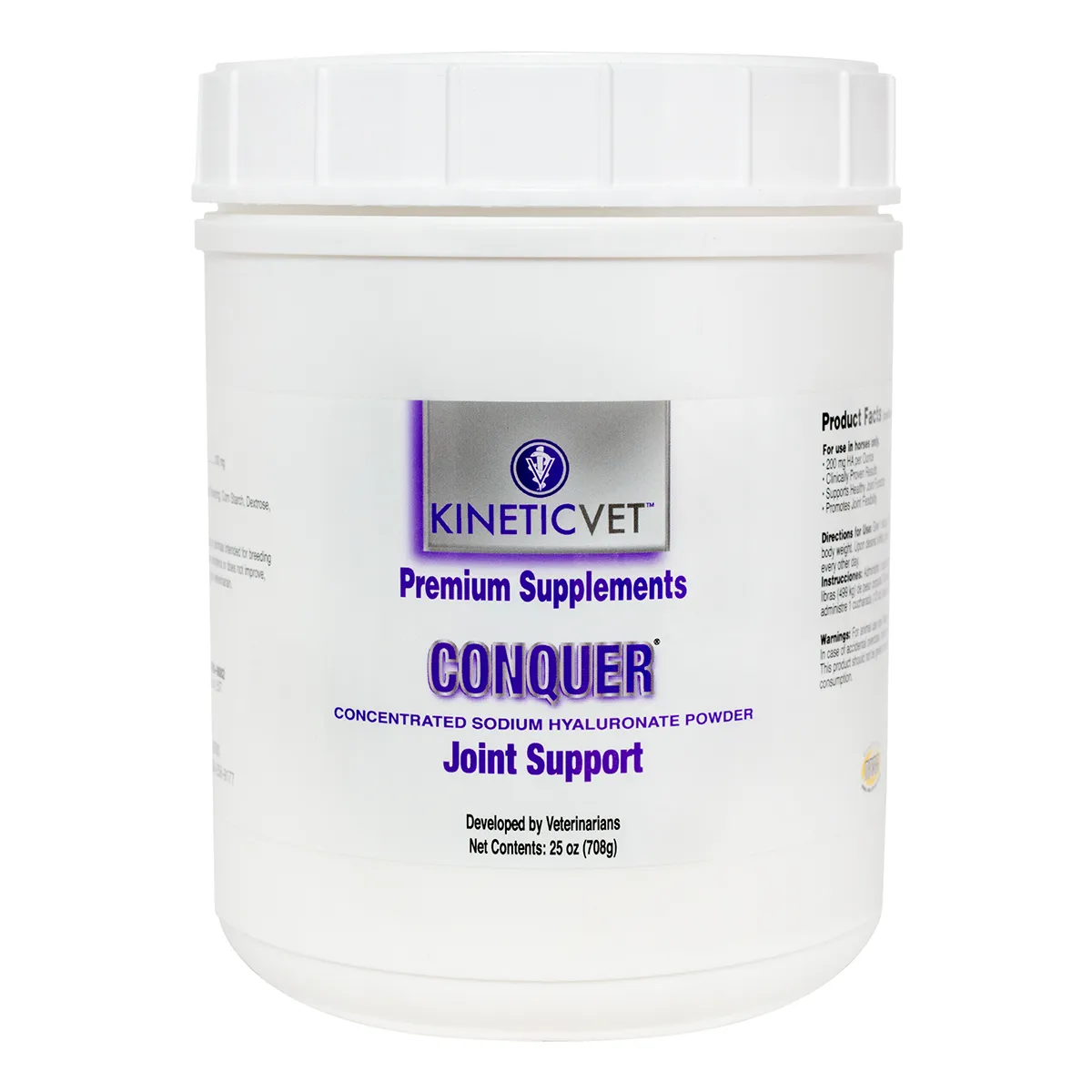 Powder: Each 1 oz dose contains 200 mg sodium hyaluronate. Dosage: Maintenance – 1 oz per 1,100 lbs body weight every other day, or 1/2 oz daily.