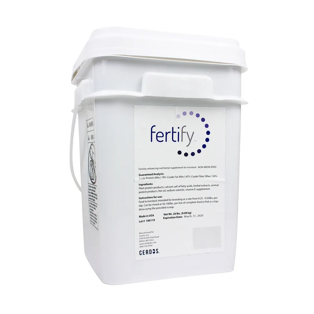 Directions: Males and Females – 1/4-1/2 lb daily as a top-dress or as part of complete diet. Scoop enclosed. Males must be fed for a minimum of 6-8 weeks before results can be expected. Should be fed continuously to maintain improved levels of semen production. Supplementing females for several weeks pre-breeding can help improve conception rates, calving rates and litter size.