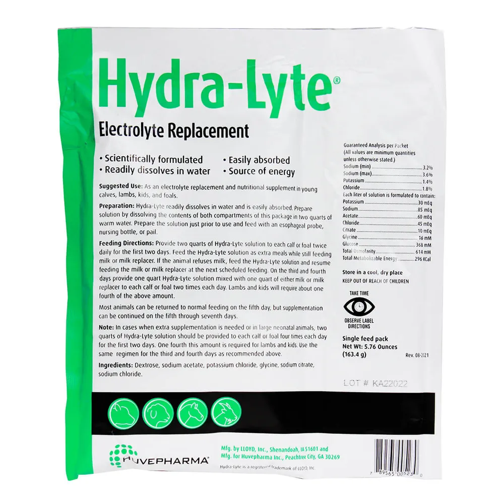 Each 5.76 oz serving of Hydra-Lyte contains guaranteed max 3.6% sodium, 1.4% potassium and 1.8% chloride.