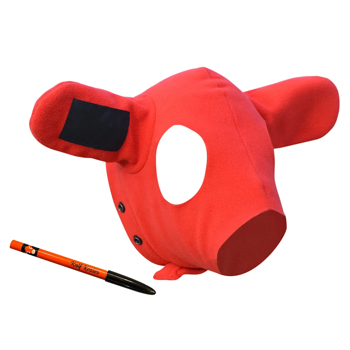 Don’t wait until calves have frozen ears before thinking about getting a Kalf Kozie. Covers all the important needs and wants that could be imagined in a top-quality calf hat. High-quality, heavy-duty polar fleece wicks away moisture and provides durable warmth. Stretchable fabric molds to calf’s head without being too tight. Allows for normal movement and positioning of calf’s ears, avoiding sores, lack of circulation or sweaty ears. Faux leather ear tag allows for calf’s tag number to be written on it; can be washed off when put on another calf. Special grease pencil is water-resistant (included). Flexible nose band allows calf to suck and eat as normal. Stainless metal snaps for adjustable neck size to accommodate any breed or size of calf that would need it. No Velcro pieces to gather dirt or straw or let loose and fall off. Brightly colored for easy spotting in herd and at night.