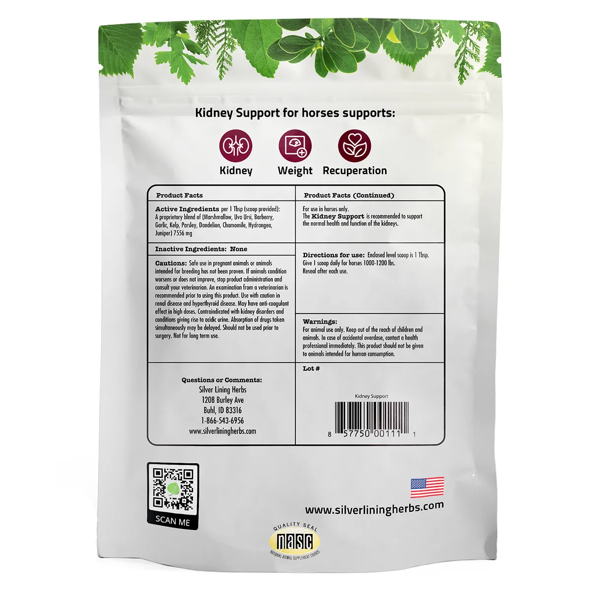 Each 1 Tbsp contains 7,556 mg proprietary blend (marshmallow, uva ursi, barberry, garlic, kelp, parsley, dandelion, chamomile, hydrangea and juniper).