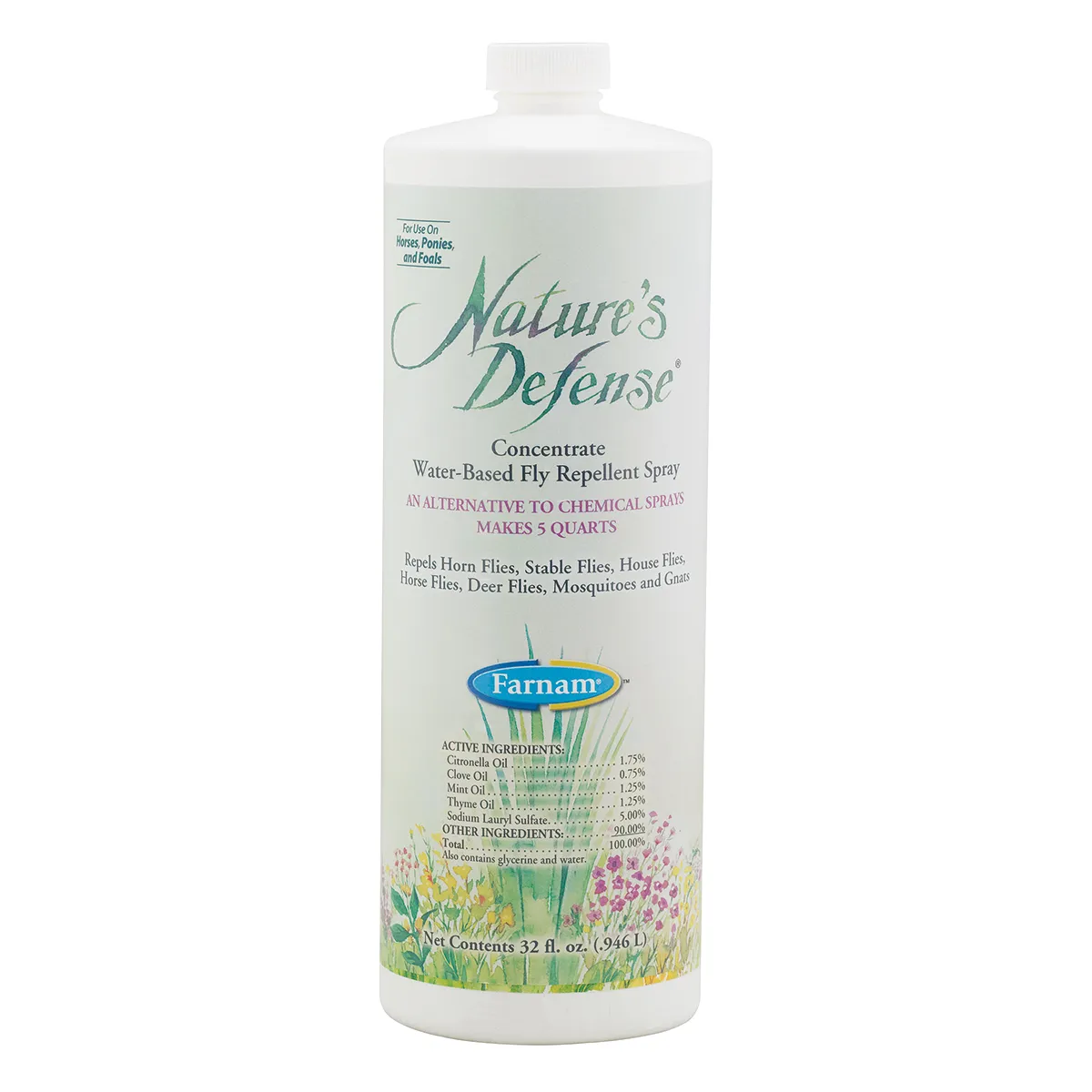 Water-based, alcohol-free formula is a gentle blend of 4 essential oils (citronella, clove, mint, thyme) for a non-greasy, non-irritating spray for use on horses, ponies and foals.Gentle enough to use every day. Fresh herbal fragrance, great for sensitive skin. No preservatives, additives or artificial colors.