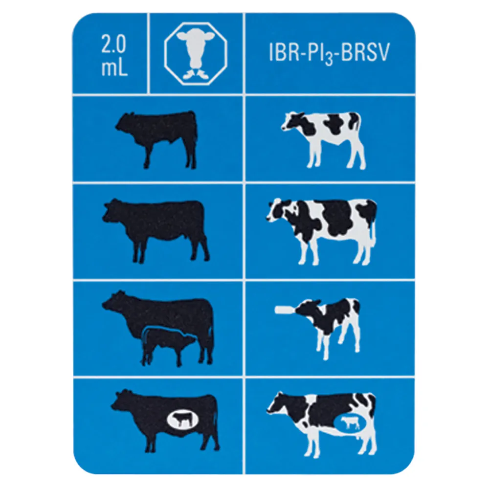 Three-way, intranasal respiratory vaccine for vaccination of healthy cattle, including pregnant cows, for the prevention of respiratory disease caused by BRSV, and an aid in preventing respiratory disease caused by IBR and PI3. INFORCE 3 contains temperature-sensitive BRSV, IBR and PI3 strains which only grow in calves’ cool nasal passages. Includes a high-titer formulation of a low-passaged strain of BRSV. Features a 6-month duration of immunity claim for IBR protection and a single-nostril administration claim; also demonstrated no maternal antibody interference for IBR and BRSV.